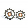 Pro MTB řady Shimano se používají kladky s počtem o jeden vyšší, původně 13 zubů nahradíme 14 zuby . Součástí balení jsou speciální excentrické vložky umožňující použít větší kladky bez změnění í geometrie přehazovačky.